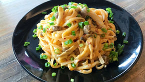 担々麺辣油で作るカルボナーラうどん